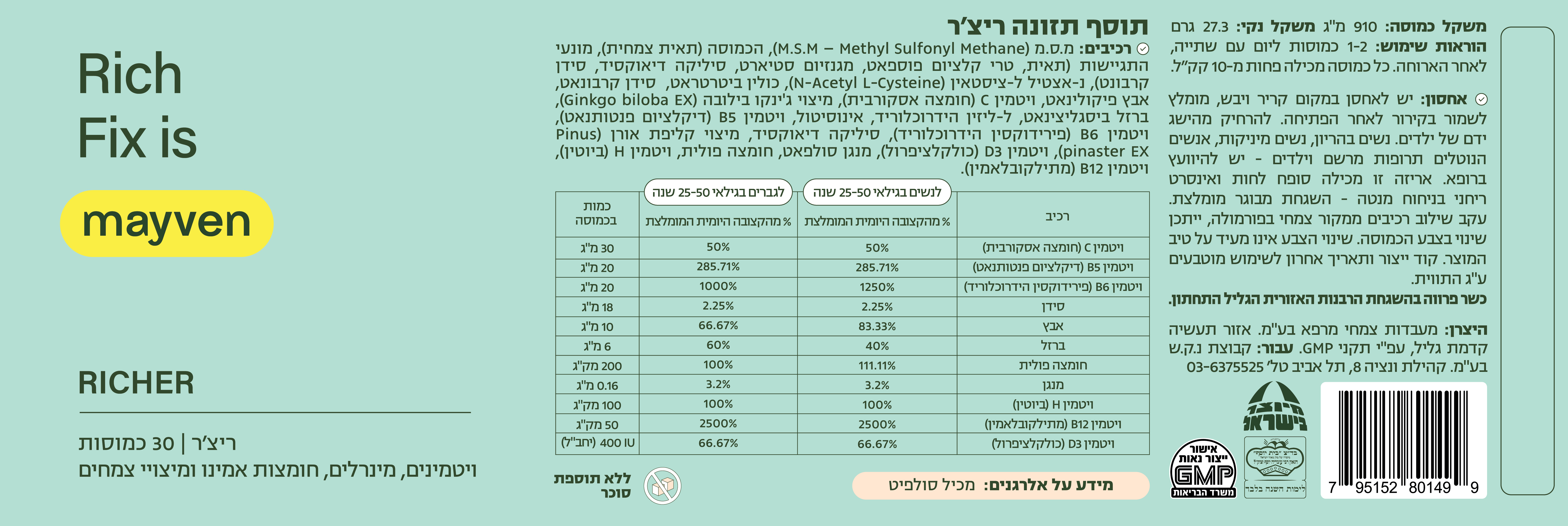 מצבי לחץ, חוסר איזון או מחסור בוויטמינים, מינרלים ורכיבי תזונה מסוימים, משפיעים על השיער שלנו. זו הסיבה שיצרנו בתהליך פיתוח מקצועי וקפדני את קפסולות RICHER. כל קפסולה מכילה לא פחות מ-20 רכיבים טבעיים, הכוללים ביוטין, אבץ, קליפת עץ האורן וגינקו בילובה, כי לכולנו מגיע Better Hair Days.