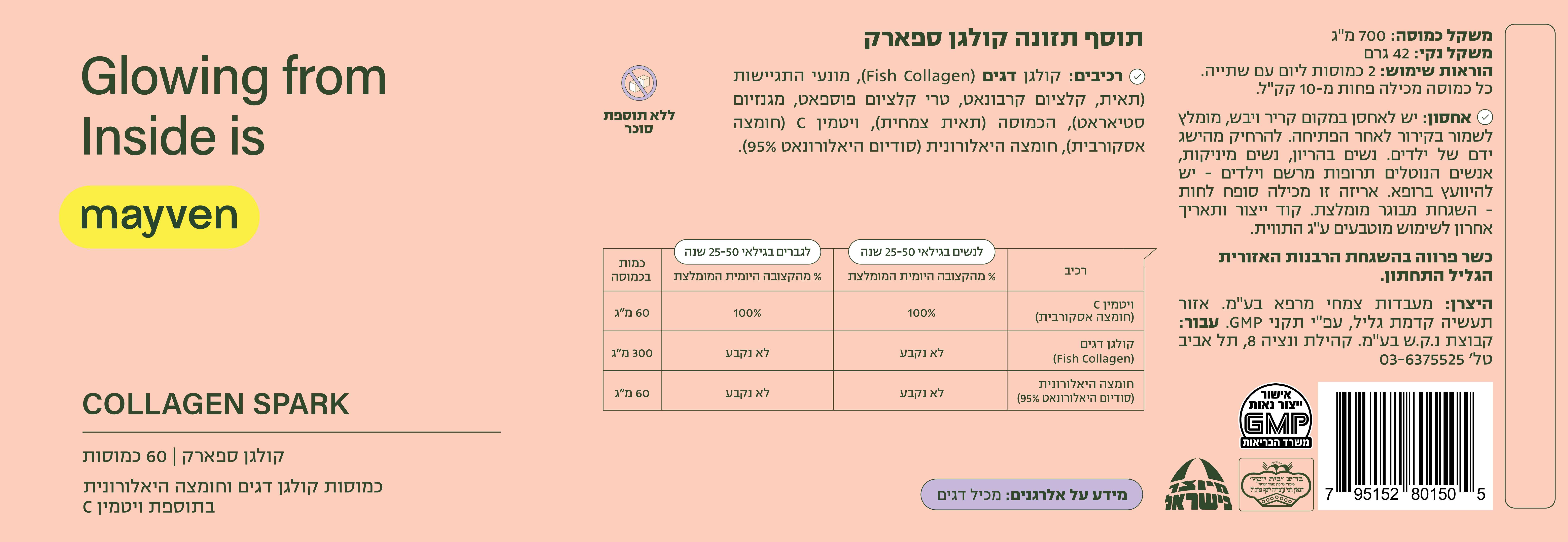 עם השנים, מתגבר ההרס של הקולגן ובנייתו המחודשת מואטת, מה שמזמין את הקמטים. הכניסי את הקפסולות לשגרת הטיפוח היומית שלך למראה מחמיא הרבה יותר. 2 קפסולות ביום זה כל מה שאת צריכה. כל בקבוק מכיל 60 קפסולות.